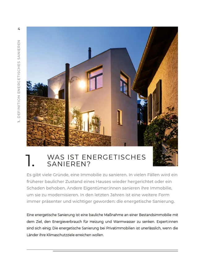 Sie wollen (oder müssen) eine Immobilie energetisch sanieren? Dann sind Sie nicht auf sich allein gestellt. Dieser Ratgeber gibt Ihnen einen ersten Überblick über das komplexe Thema und hilft Ihnen dabei, die nächsten Schritte zu planen. Als Ihre persönlichen Immobilienexperten stehen wir Ihnen gerne zur Seite. Wir zeigen Ihnen die Chancen (Wertzuwachs!) sowie die Risiken (Bußgeld!) und Möglichkeiten (Fördertöpfe!). Sie wollen mehr als Lesen? Dann lassen Sie uns gerne persönlich darüber reden. Gerne rufen wir Sie zu einem von Ihnen gewünschten Zeitpunkt zurück.